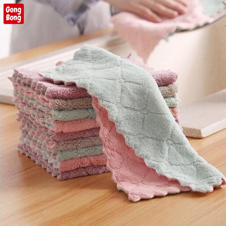 Nhà cửa & Đời sống > Dụng cụ chăm sóc nhà cửa > Khăn vệ sinh || Khăn lau bếp đa năng siêu mềm mịn thấm hút 2 mặt khác màu khăn lau chén bát đĩa nhà bếp Gong Bong storeCòn hàng