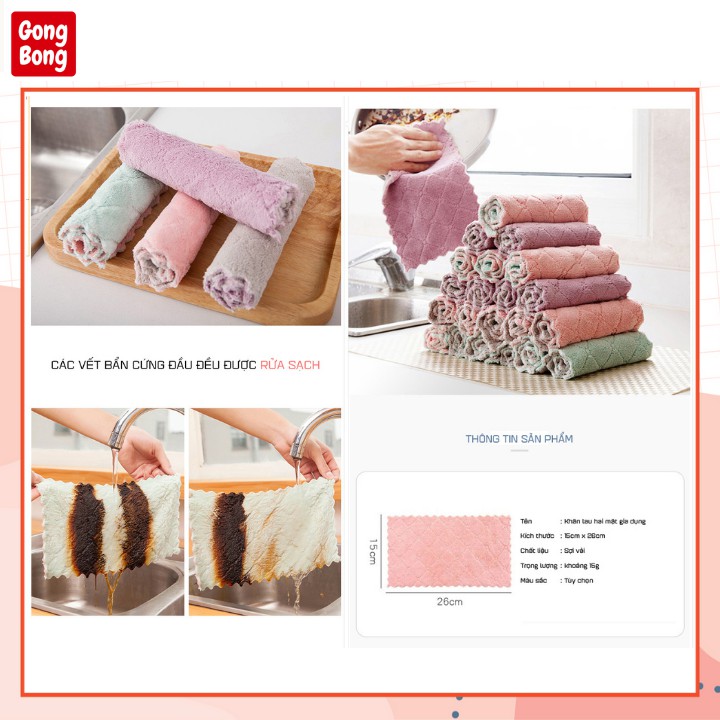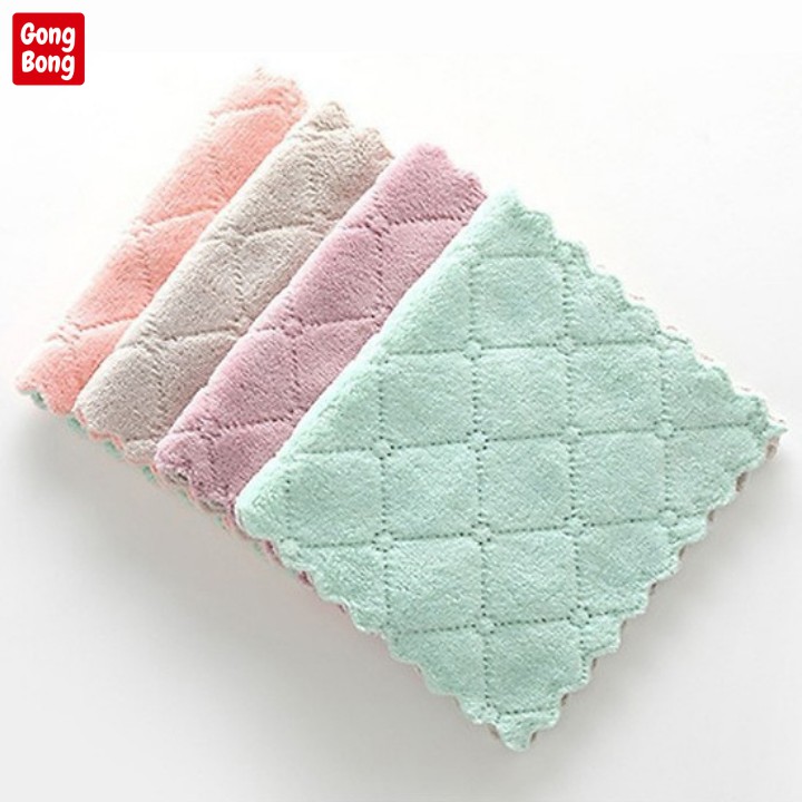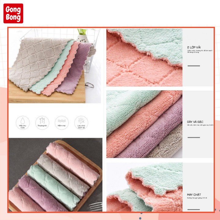 Khăn lau bếp đa năng siêu mềm mịn thấm hút 2 mặt khác màu khăn lau chén bát đĩa nhà bếp Gong Bong store
