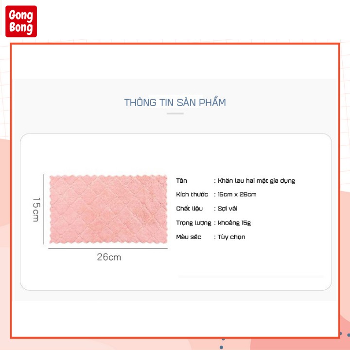 Khăn lau bếp đa năng siêu mềm mịn thấm hút 2 mặt khác màu khăn lau chén bát đĩa nhà bếp Gong Bong storeSản phẩm làm từ chất liệu vải mềm mại không làm tổn hại da tay khi sử dụng, thấm hút nước tốt cho bàn tay bạn khô ngay tức thì. Thân khăn là những sợi vải siêu mềm, sẵn sàng len lõi vào những nơi mà bạn muốn lau sạch.