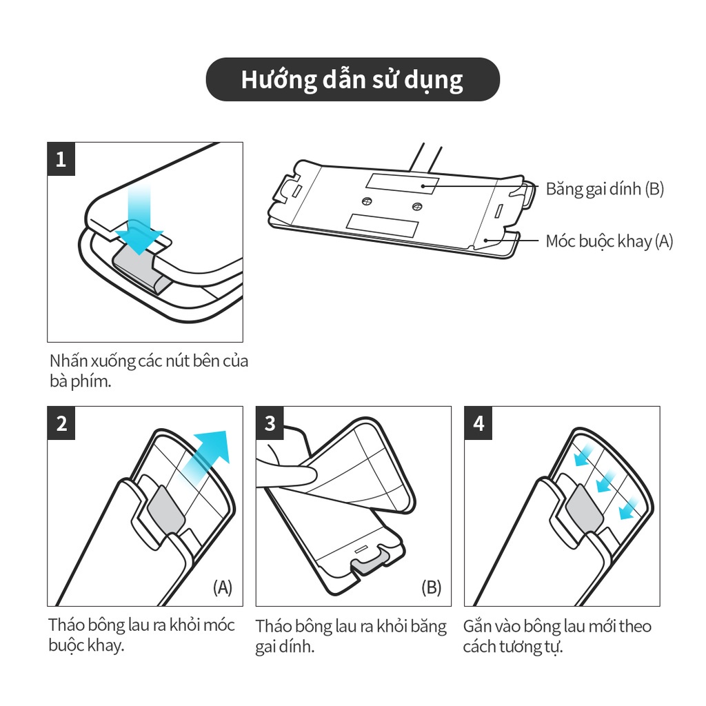 - Không ngâm vải lau trong thuốc tẩy hoặc chất tẩy rửa mạnh khi vệ sinh