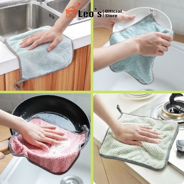 Khăn lau tay đa năng treo tường nhà bếp, khăn lau bát đĩa, cốc chén thấm nước chống dính dầu mỡ hai mặt dễ vệ sinh Leo’s_Officail✅ THÔNG TIN SẢN PHẨM: