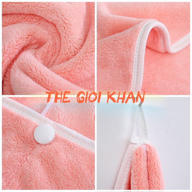 Chất khăn mềm mại dày dặn thấm hút cực tốt, bảo vệ mái tóc tránh bị xơ, rối. Thiết kế bọc viền tinh tế sử dụng lâu dài không lo bụng xổ chỉ/ viền, khuy cài xin xò tiện dụng, dành cho cả tóc ngắn và dài.