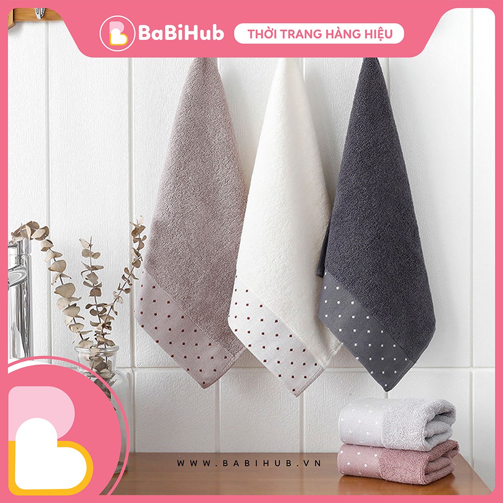 Khăn Mặt Bông Mềm Mại Họa Tiết Chấm Bi
