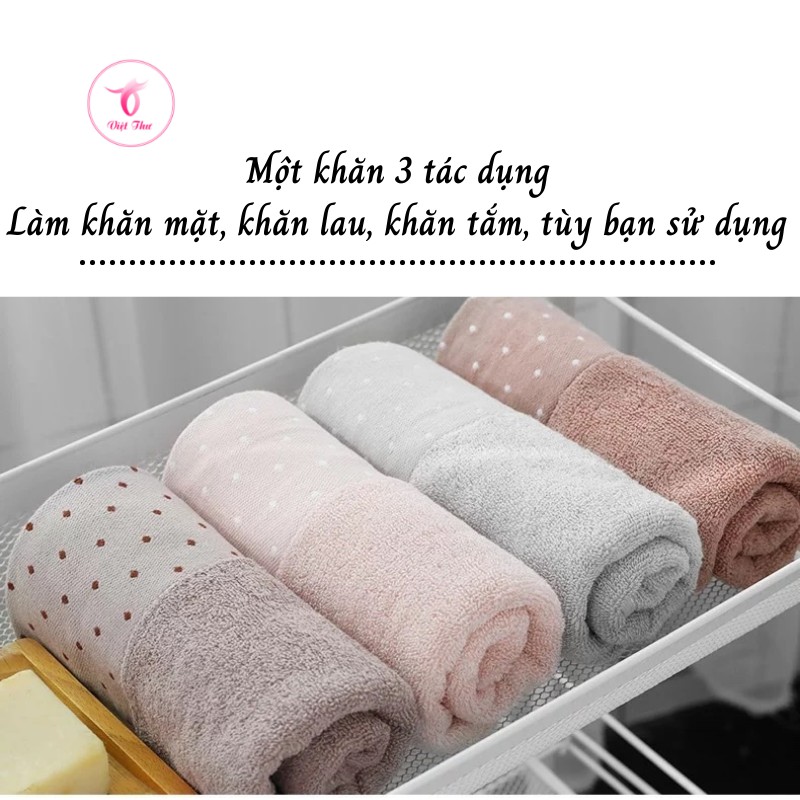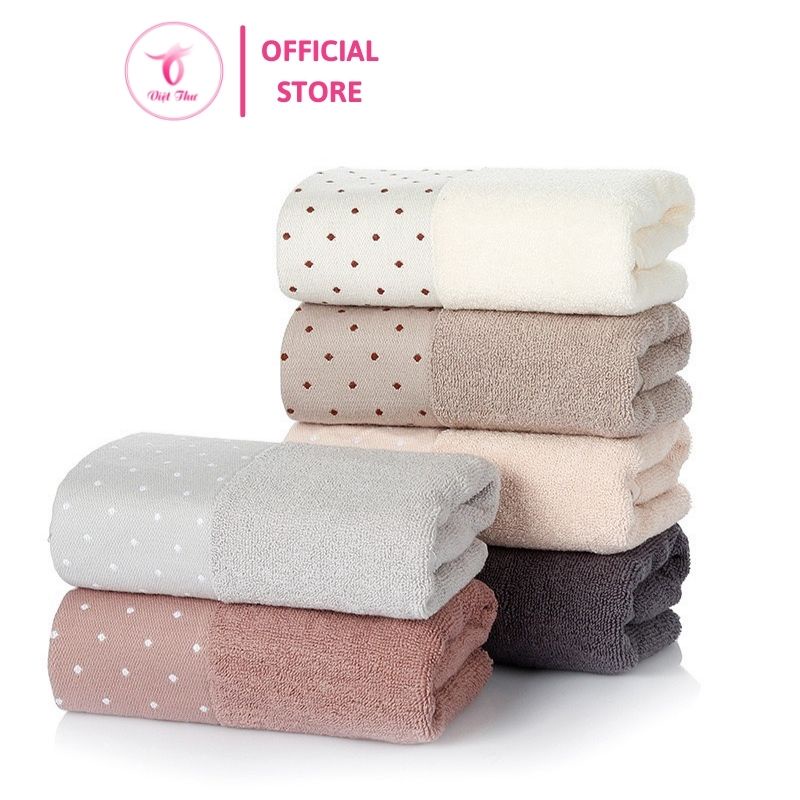 Khăn mặt cotton chấm bi cao cấp VIỆT THƯ, siêu mềm mịn, siêu thấm hút, siêu dày, 100gr, 35x75cm