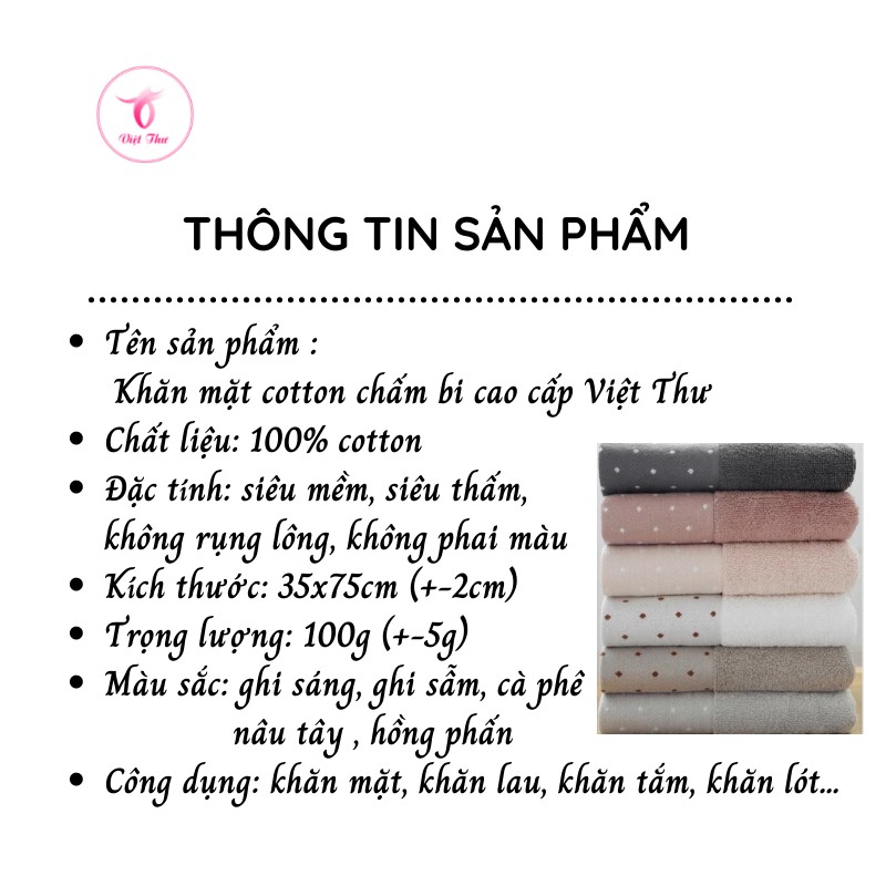- Tên sản phẩm: Khăn mặt cotton chấm bi cao cấp Việt Thư