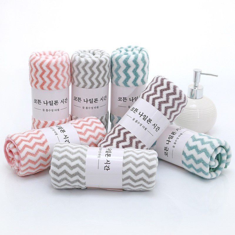 Nhà cửa & Đời sống > Đồ dùng phòng tắm > Khăn mặt, khăn tắm, áo choàng tắm > Khăn tắm || Khăn Mặt Cotton Lông Cừu Hàn Quốc Vân Kẻ Sọc Siêu Mềm Mịn Thấm Hút 50x30cmCòn hàng