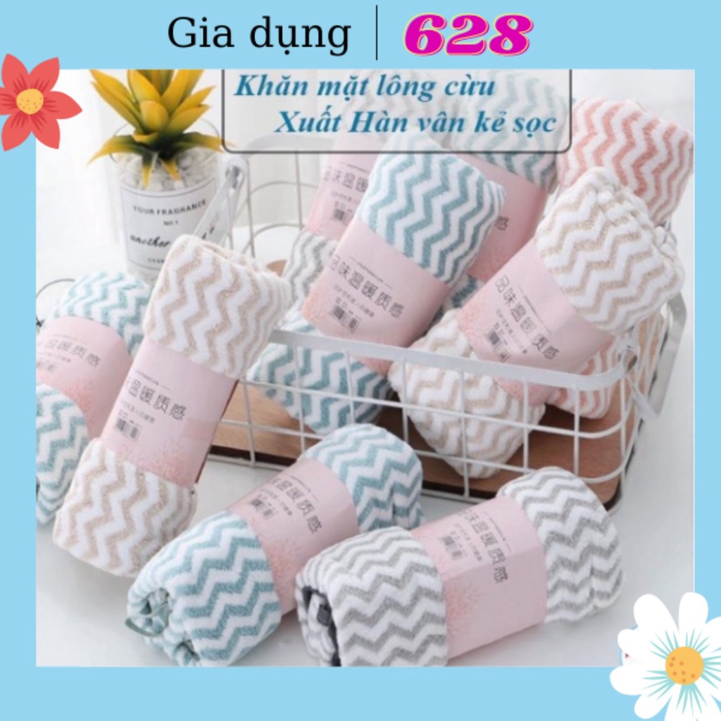 - Khăn Mặt Lông Cừu Xuất Hàn Vân Kẻ Sọc từ chất liệu sợi vải bông mềm mịn, siêu mềm, không bị xù lông, không phai màu