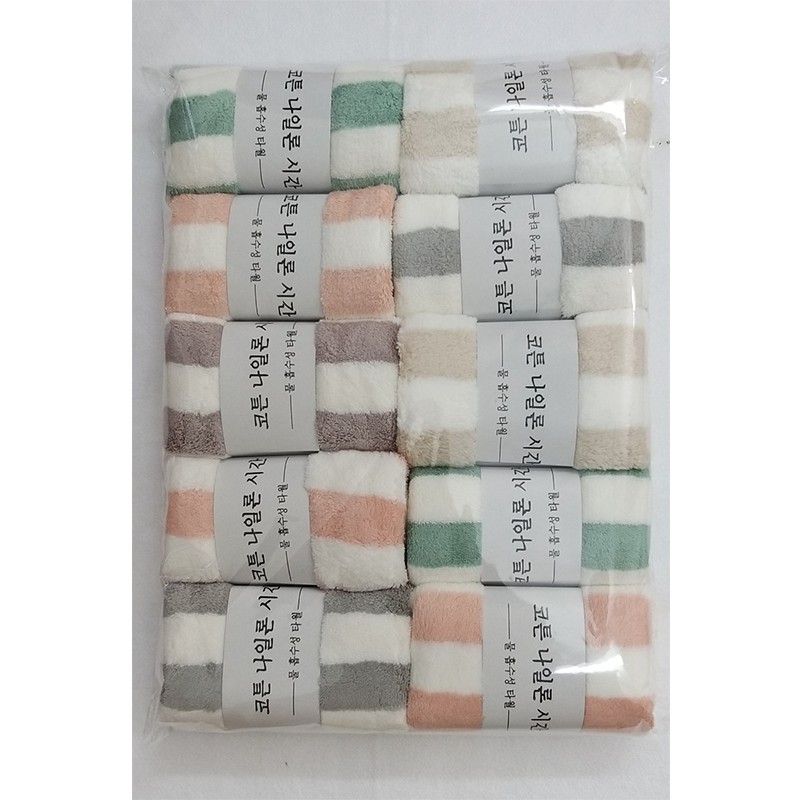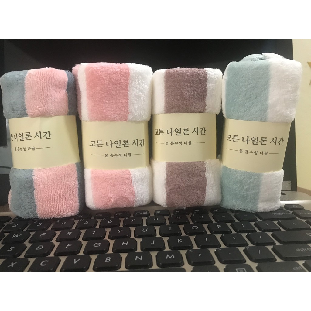 - Khăn Mặt Lông Cừu Xuất Hàn Vân Kẻ Sọc từ chất liệu sợi vải bông mềm mịn, siêu mềm, không bị xù lông, không phai màu