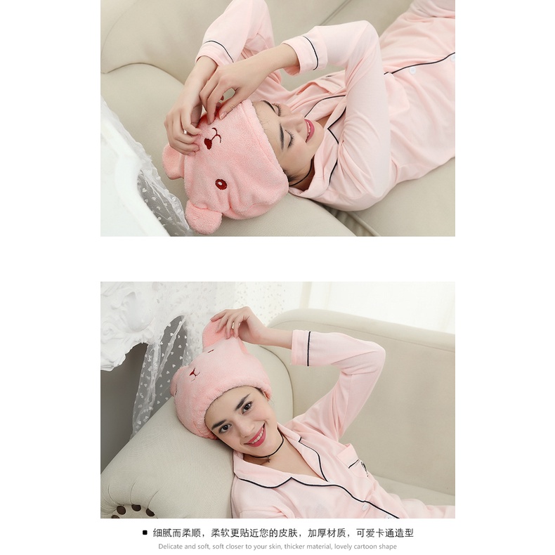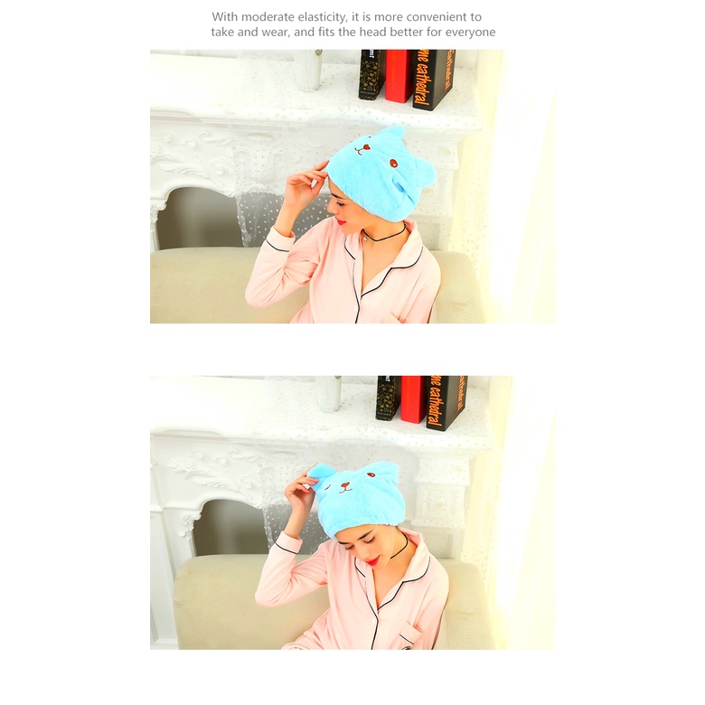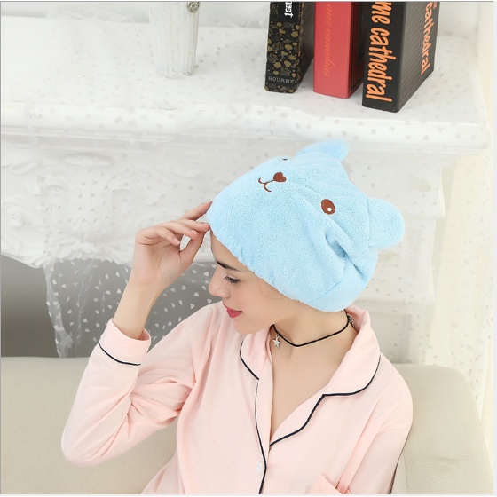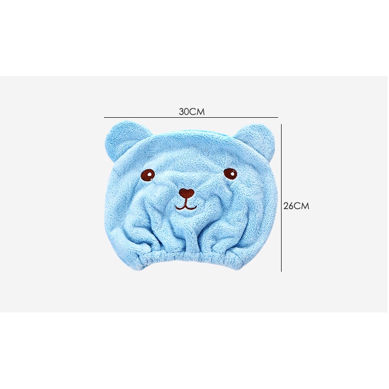 Khăn Mũ Trùm Đầu Khô Tóc Hình Gấu 26cm Làm Khô Tóc Nhanh Chóng Chống Nước Khi Tắm Tiện Dụng