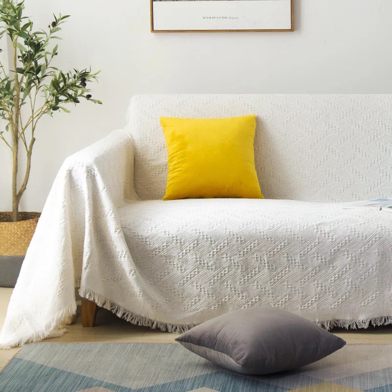 Khăn phủ sofa giúp thể hiện cá tính của chủ nhân căn nhà, giúp không gian sống trở nên lãng mạn và hài lòng hơn bao giờ hết. Ngoài ra còn thể sử dụng làm thảm trải ngồi,trải ghế,khăn trải bàn