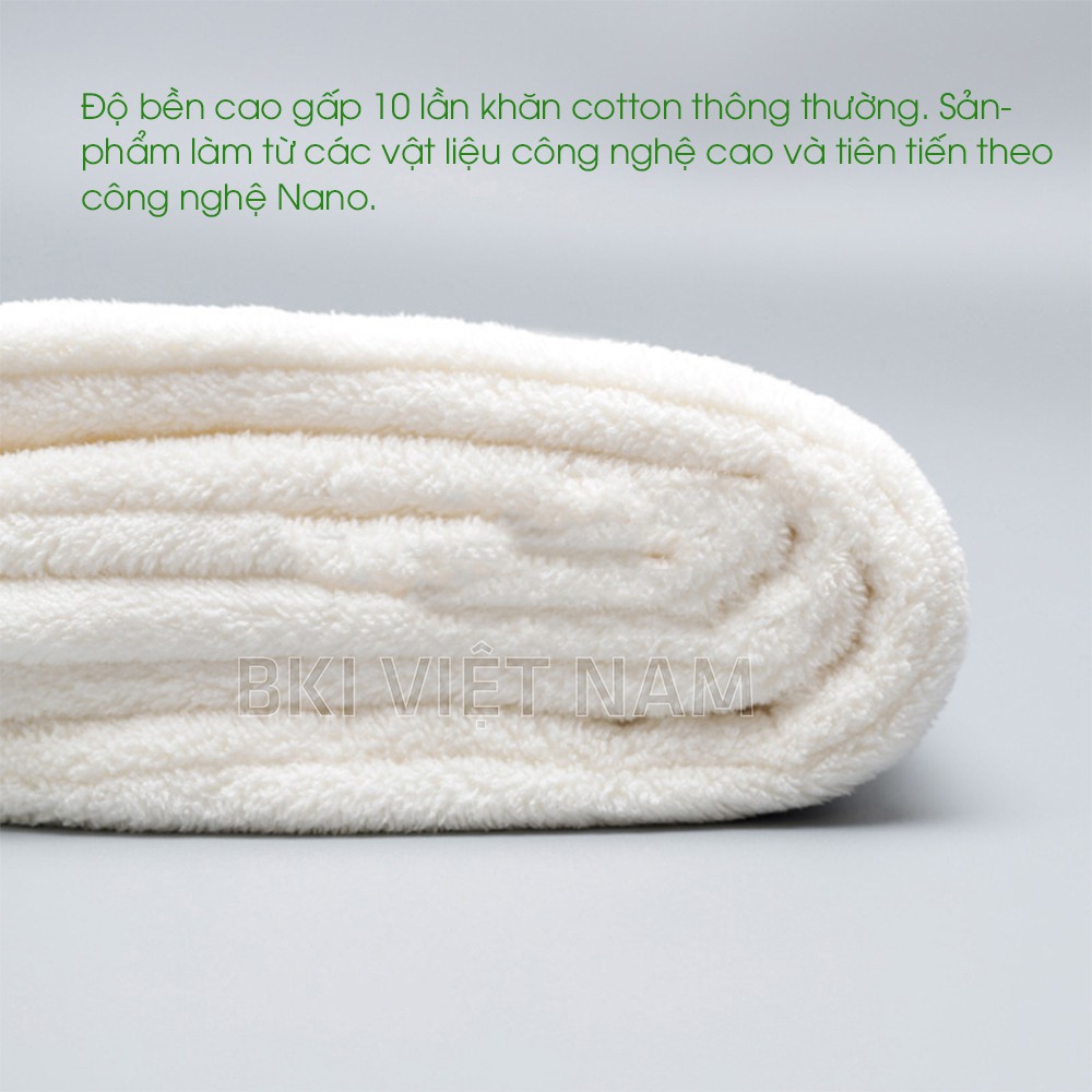 – Khăn được làm băng chất liệu sợi bông 100% cotton mềm và xốp nên độ thấm hút rất nhanh, gần như gấp 10 lần so với khăn thông thường.