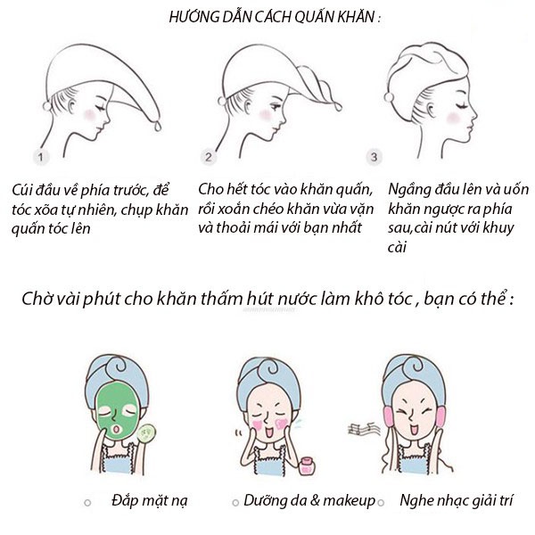 TÊN SẢN PHẦM : Khăn Quấn Tóc, Khăn Ủ Tóc Bằng Sợi Than Tre Hoạt Tính, Kháng Khuẩn và Thấm HútKÍCH THƯỚC : 65*25 cm