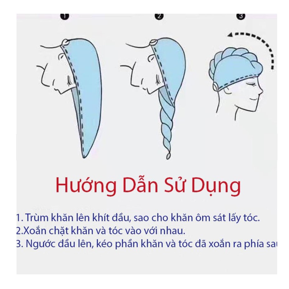 - Lau khô tóc mà không cần máy sấy, không tổn hại đến tóc, tránh gây khô, xơ tóc, không hại da đầu
