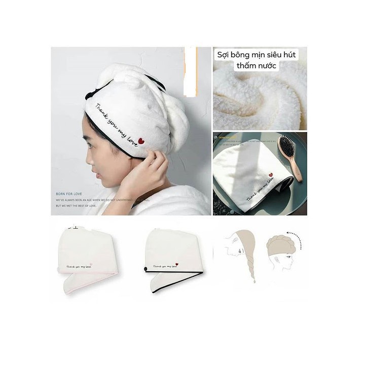 ➡️ Khăn quấn tóc cotton thấm hút nước cực tốt, tóc nhanh khô.