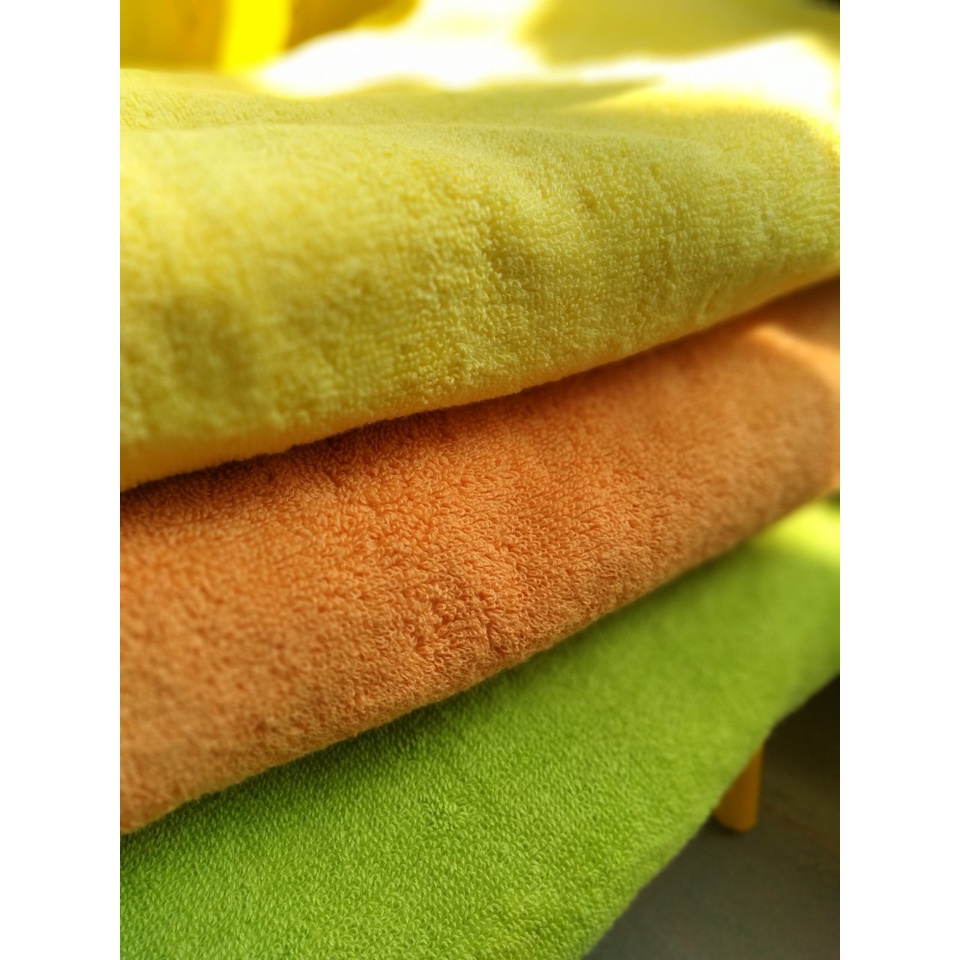 Chất khăn cotton mịn, mềm, thấm hút tốt, lâu co giãn và không rụng bông, không phai màu