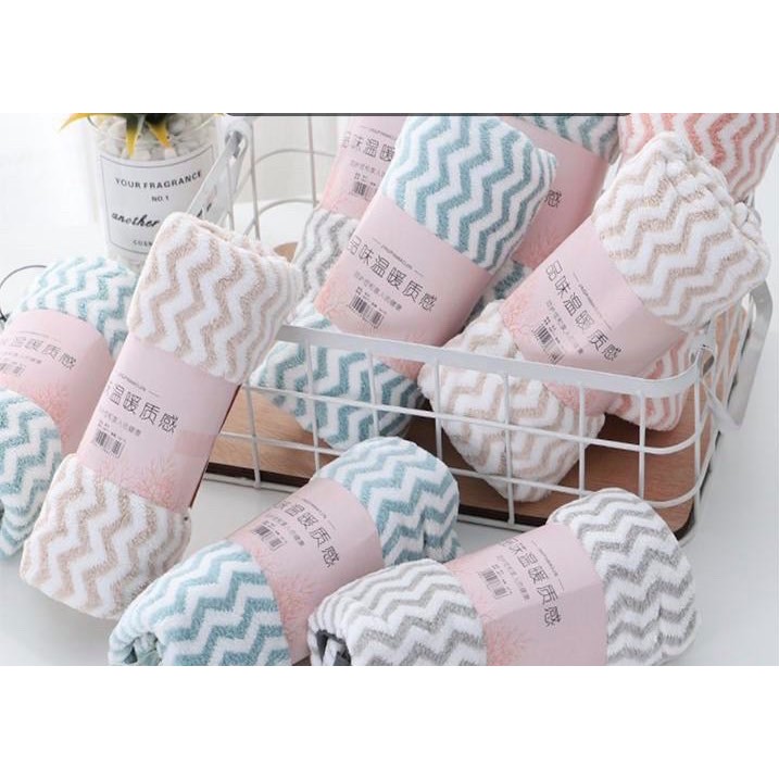Nhà cửa & Đời sống > Đồ dùng phòng tắm > Khăn mặt, khăn tắm, áo choàng tắm > Khăn tắm || Khăn tắm khăn mặt lông cừu kẻ sọc mềm mịn siêu thấm nước an toàn cho da không phai màuCòn hàng