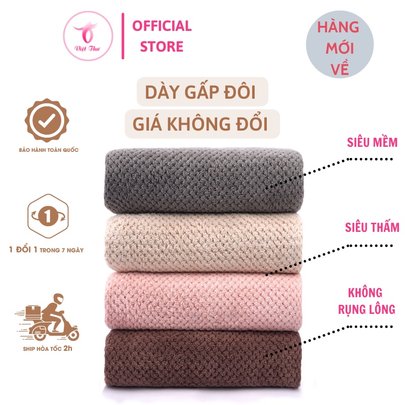 Khăn tắm sợi microfiber cỡ lớn, khăn lau lông mềm mịn, siêu thấm hút nước 70x140 cm, nhiều màu - Việt thư