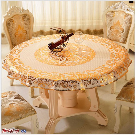 Giới thiệu Khăn Trải Bàn Ăn Nhũ Vàng -TrắngTròn 1m5 Chống Thấm Sang Trọng
