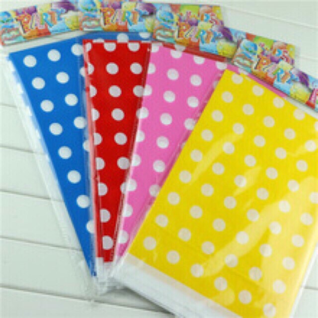 Khan trải bàn chấm bi thích hợp trang trí sinh nhậtMàu sắc: xanh, hồng, vàng