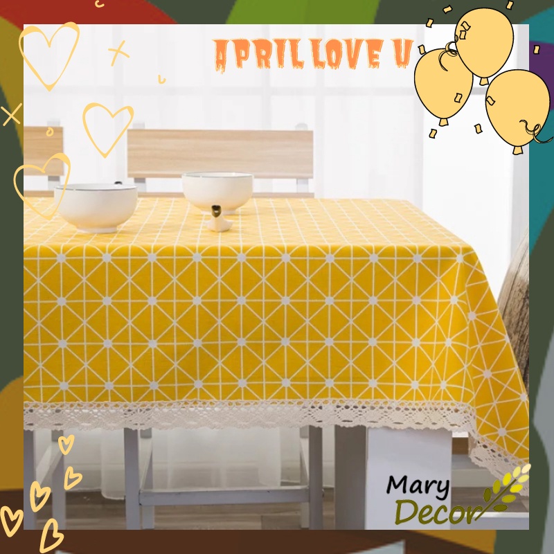 Nhà cửa & Đời sống > Trang trí nhà cửa > Khăn trải bàn || Khăn trải bàn Họa tiết vàng viền ren (đủ kích thước) -E01Còn hàng