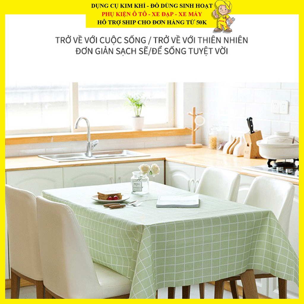 - Được làm từ chất liệu PEVA giả vải cao cấp, không thấm nước, giúp màu sắc khăn trải bàn tươi sáng bắt mắt