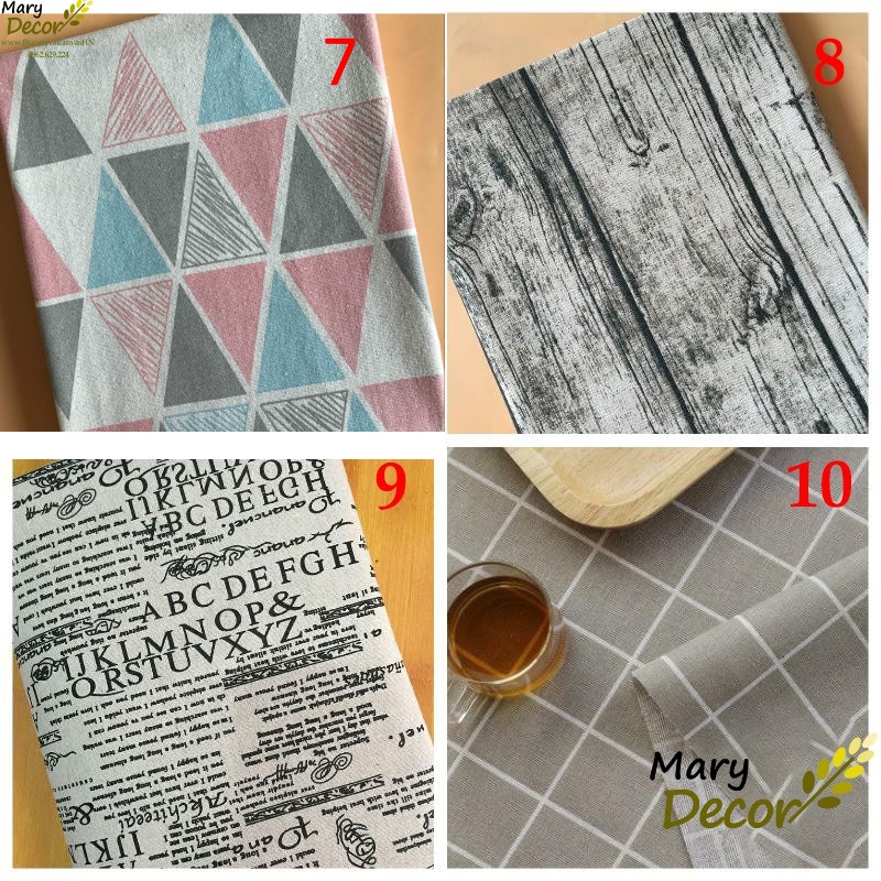 8 màu kẻ caro, 1 vân gỗ, 1 vải họa tiết báo chí