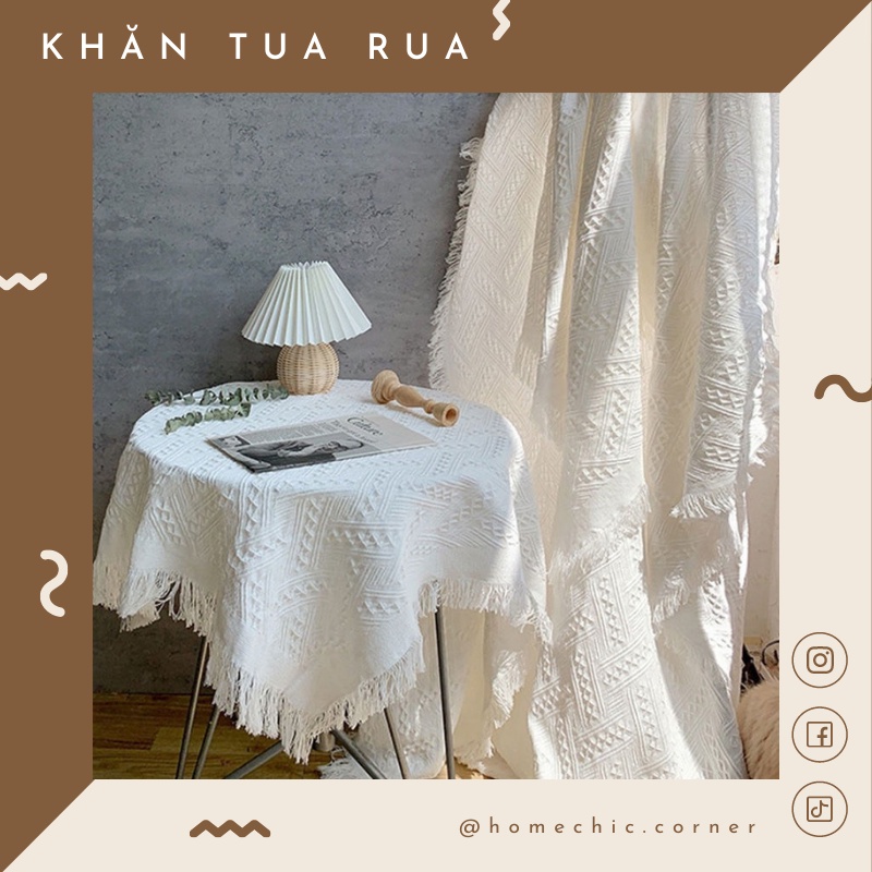 Nhà cửa & Đời sống > Trang trí nhà cửa > Khăn trải bàn || Khăn trải bàn viền tua rua, thảm picnic, chăn ghế sofa phong cách retro | HOME CHIC CORNERCòn hàng