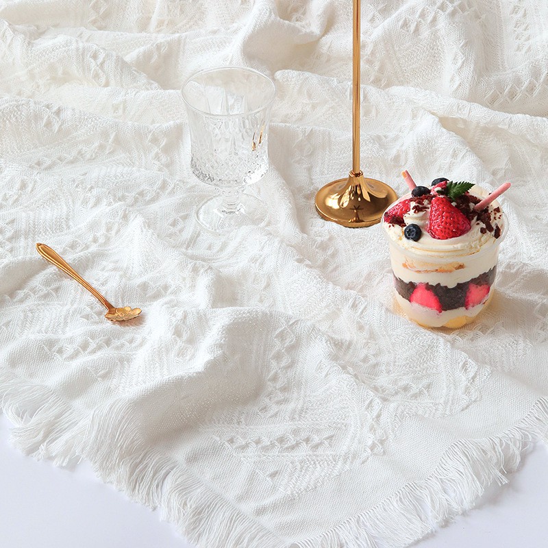 Khăn trải bàn vintage phối ren trắng - decor trang trí nhà cửa - làm đạo cụ chụp ảnh size 90 x 90 cm