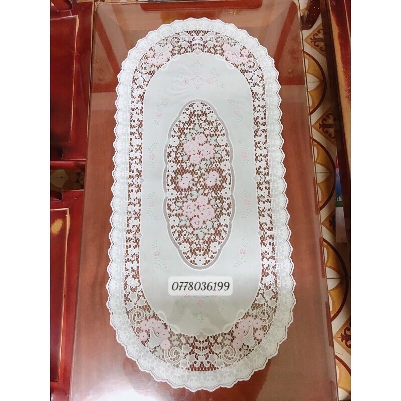 📣📣Khăn trải bàn Ren Hoa Nhật nhựa PVC hình Bầu dục + Chữ Nhật 40x92cm📣📣👉Chất liệu: Khăn được sản xuất trên dây chuyền hiện đại theo công nghệ Nhật Bản, chất liệu PVC, hoa văn trang trí được in nổi 3 chiều, dày dặn.