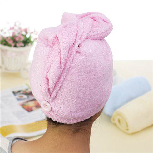 ➡Khăn trùm đầu giúp lau khô tóc một cách nhanh chóng, dễ dàng, vật dụng cần thiết cho mọi bạn gái.➡Khăn được làm từ sợi có khả năng thấm hút cực tốt, gấp 4 đến 7 lần trọng lượng của khăn, siêu mềm mại, không làm đứt gãy hay tổn thương tóc