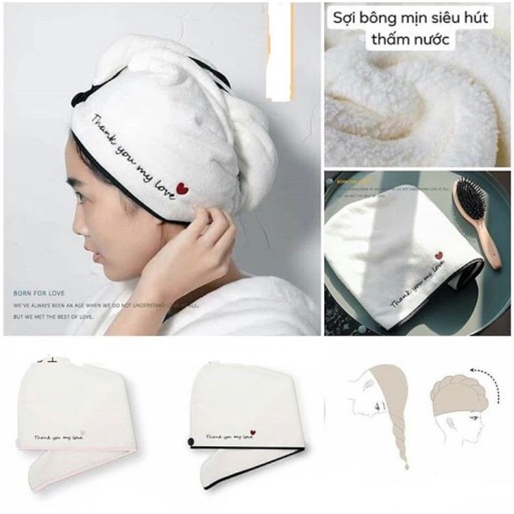 Khăn ủ tóc cotton mềm siêu thấm hút, khô tóc nhanh, quấn ủ hấp tóc cho bạn giá cực đáng yêu