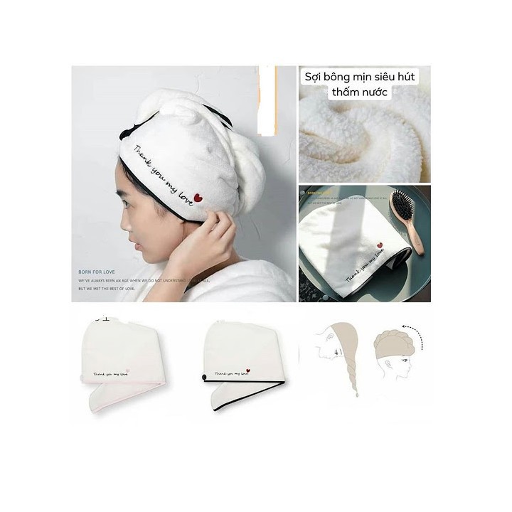 Khăn ủ tóc cotton mềm siêu thấm hút, khô tóc nhanh, quấn ủ hấp tóc cho bạn giá cực đáng yêu