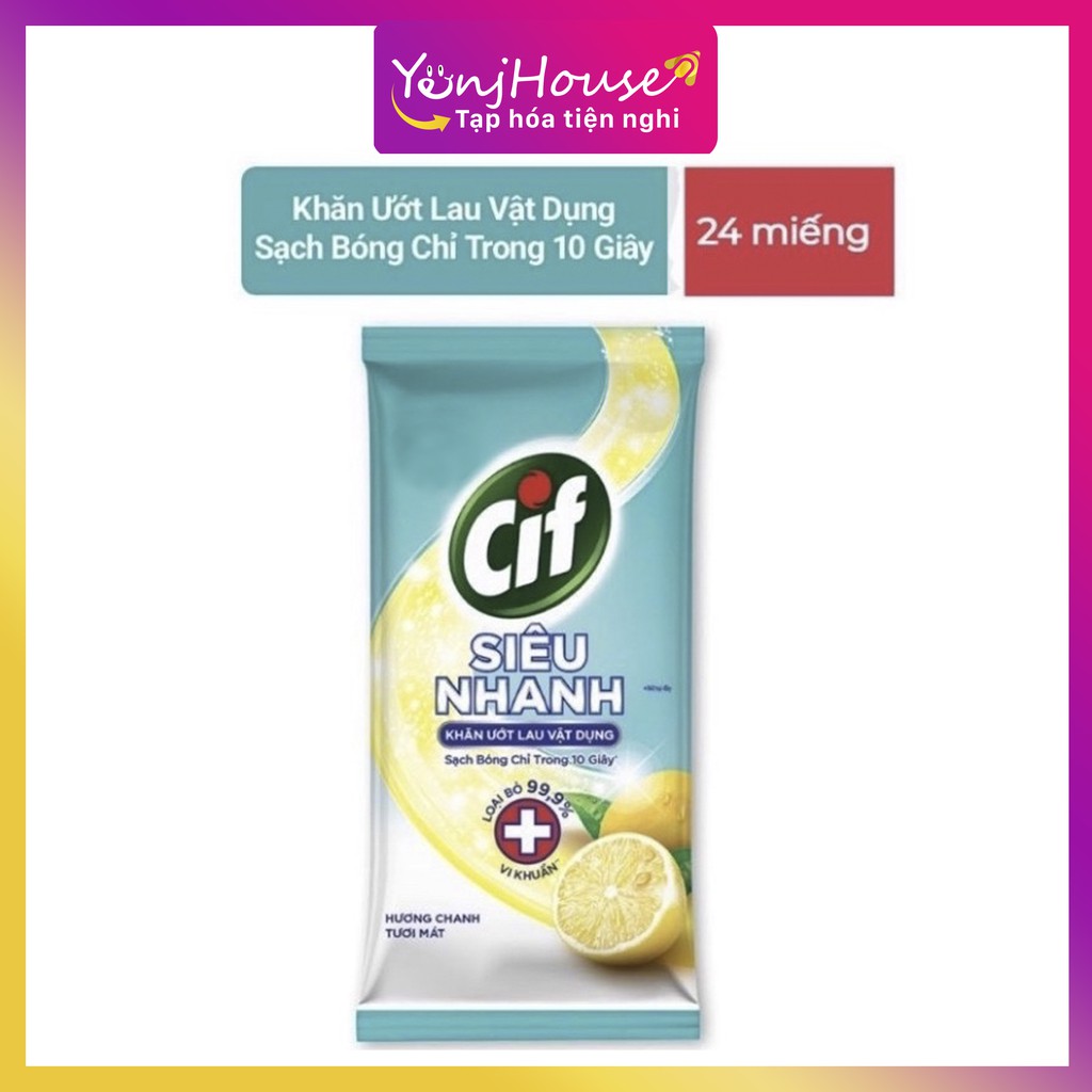 KHĂN ƯỚT CIF 24 MIẾNG ĐA NĂNG LAU CỰC NHANH SẠCH BÓNG CHỈ TRONG 10 GIÂY - YENJHOUSE