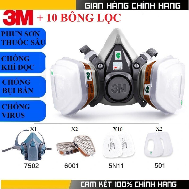 Phụ kiệnđi kèm: 2 phin lọc 3M 6001 + 10 bông lọc 3M ™ 5N11CN + 2 nặp 3M 501CN