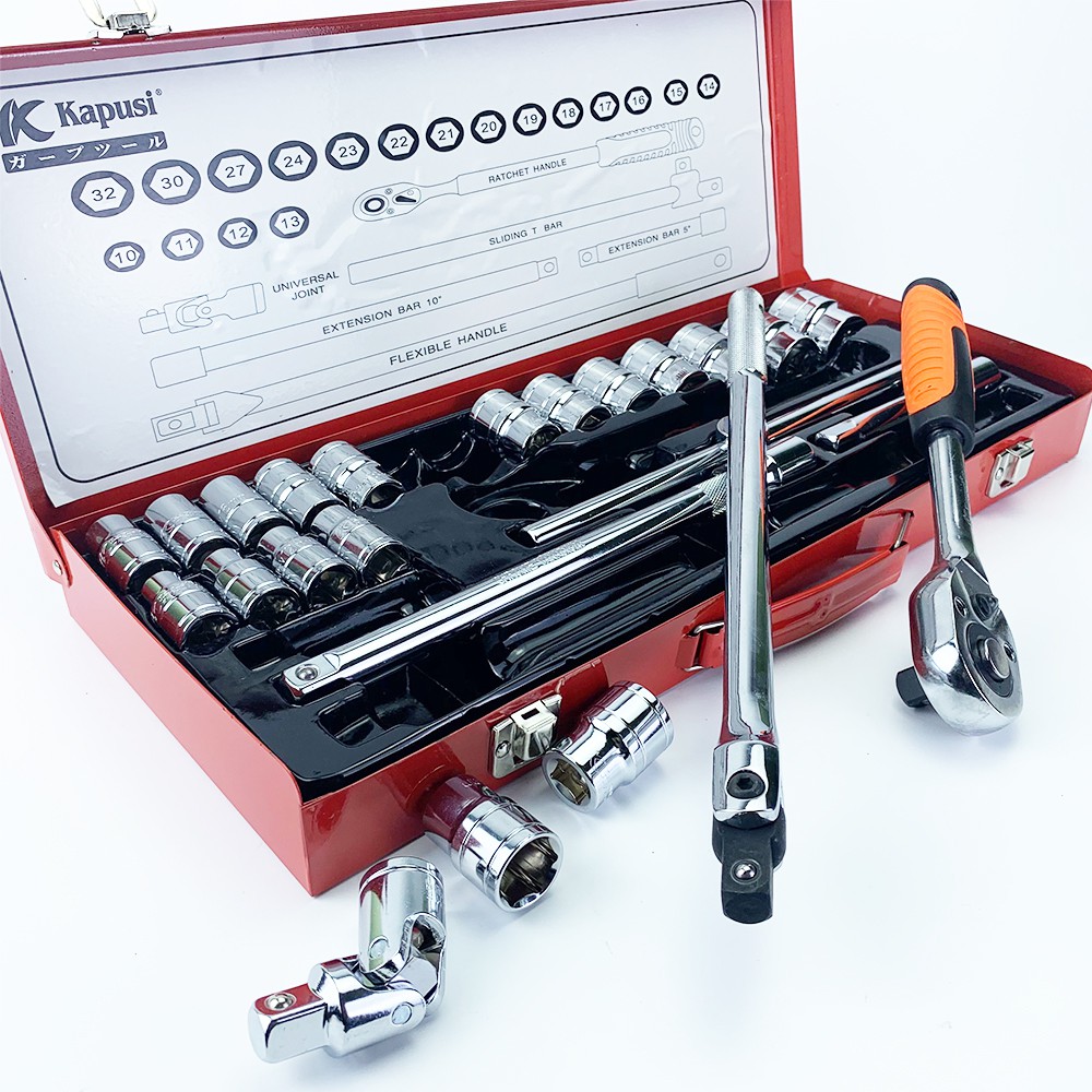 Nhà cửa & Đời sống > Dụng cụ & Thiết bị tiện ích > Dụng cụ > Hộp dụng cụ cầm tay || Bộ Khẩu tuýp Kapusi 24 chi tiết 1/2 10- 32-Thép CR-V cao cấp dụng cụ sửa chữa xe máy ô tô chuyên dụngCòn hàng