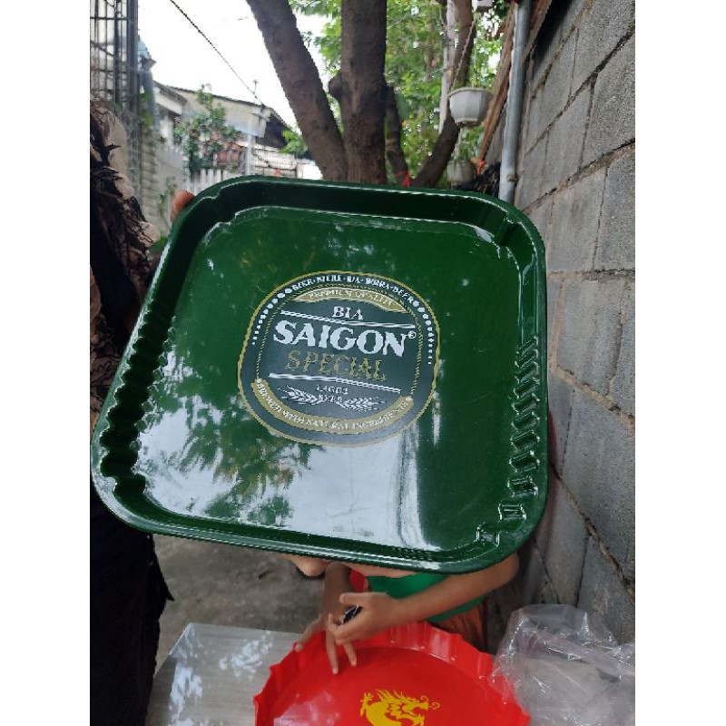 Sản phẩm khay tròn bưng cafe với 2 màu xanh và đỏphù hợp sử dụng trong quán cafe,quán ăn