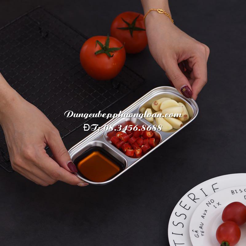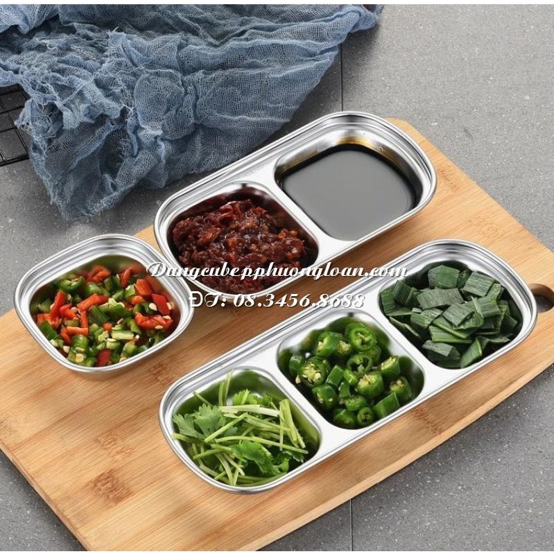Nhà cửa & Đời sống > Bộ đồ bàn ăn > Tô || Khay chấm, bát chấm Hàn Quốc, khay gia vị Inox 304 loại 1 ngăn, 2 ngăn, 3 ngăn siêu sang trọngCòn hàng