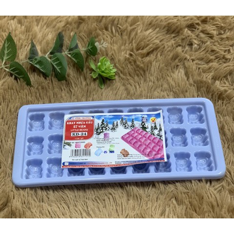 - Khay làm đá 27 viên hình chú gấu xinh xắn dễ thương.- Thành phần: Nhựa PE 100% (nhựa dùng trong thực phẩm)