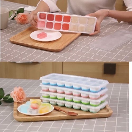 Giới thiệu Khay đá silicon (14 ngăn) có nắp đậy an toàn không dính mùi thực phẩm,làm rau câu,làm kem, trữ đông thực phẩm ăn dặm