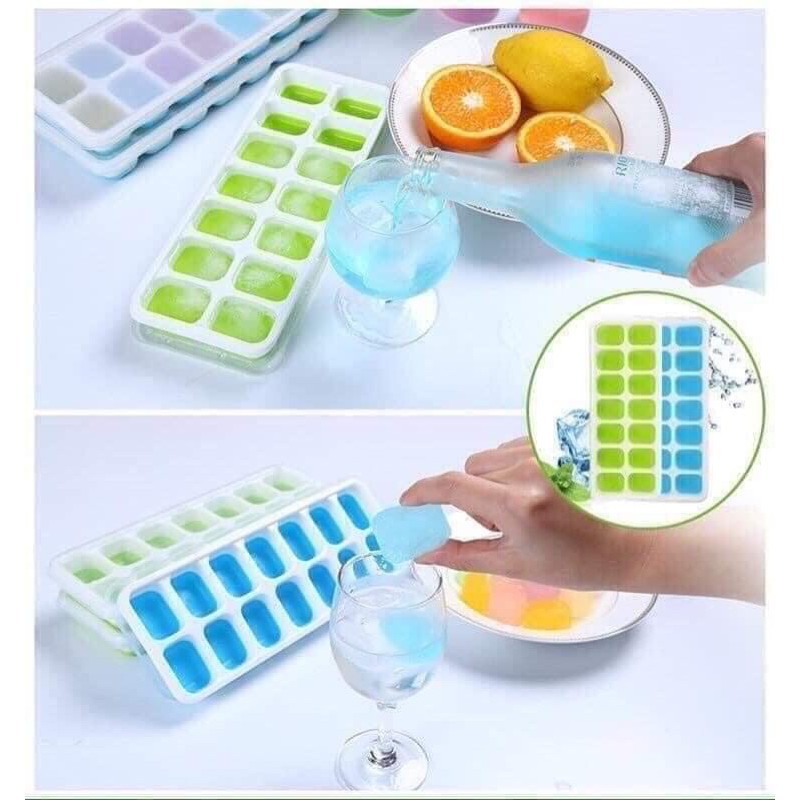 Nhà cửa & Đời sống > Dụng cụ nhà bếp > Thớt || Khay đá silicon (14 ngăn) có nắp đậy an toàn không dính mùi thực phẩm,làm rau câu,làm kem, trữ đông thực phẩm ăn dặmCòn hàng