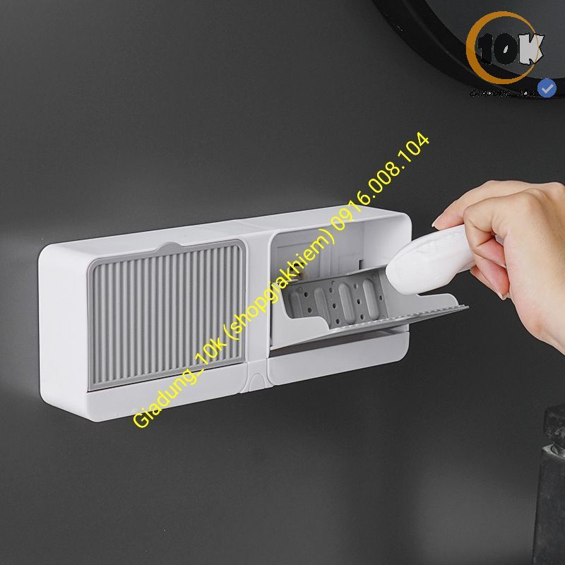 Khay để bánh xà phòng đôi có nắp đậy tiện lợi chống nước vào (cb)