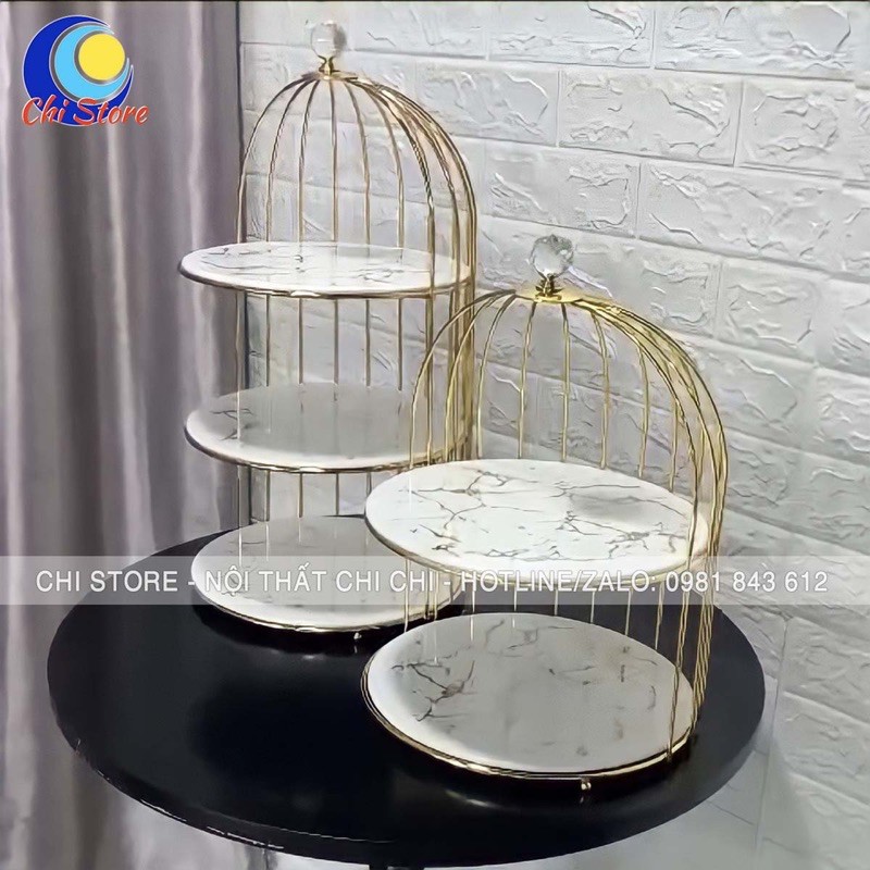 Khay Để Đồ Mẫu Lồng Chim Trang Trí Tiệc, Kệ Đựng Mĩ Phẩm Khung Inox Mạ Vàng Sang Chảnh (SẴN HÀNG)