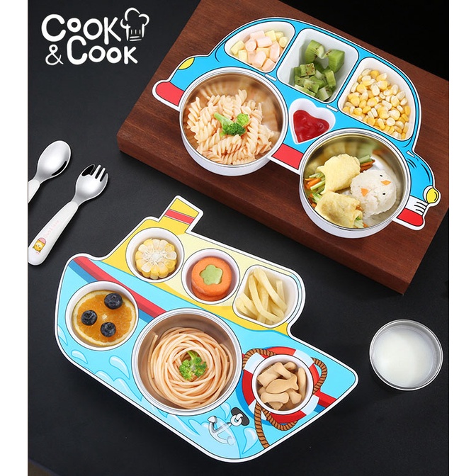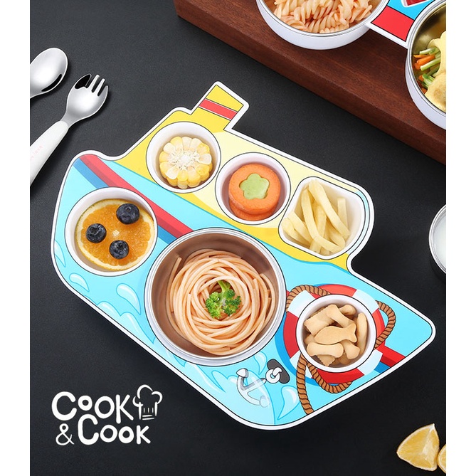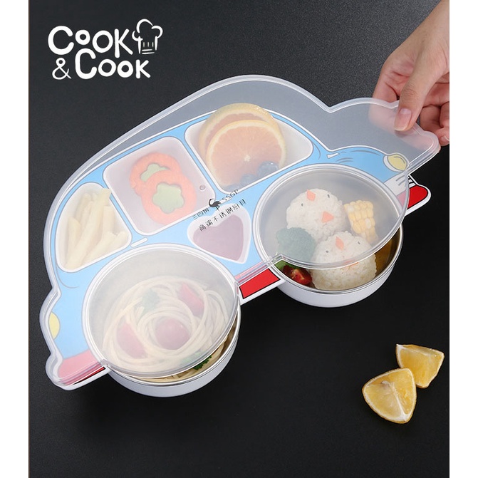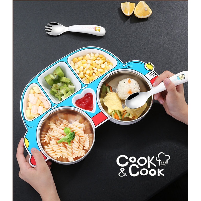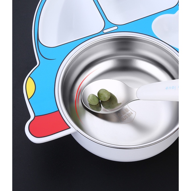 Khay đựng cơm cho trẻ em ăn dặm chống trơn trượt kèm muỗng nĩa có nhiều hình dễ thương bằng nhựa và inox cao cấp