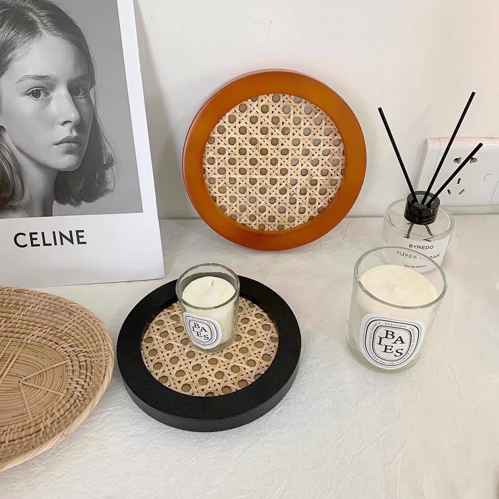 Giới thiệu Khay Đựng Đồ Bằng Mây Đan Viền Gỗ DECOR Cao Cấp Phong Cách Retro Bắc Âu Khay Gỗ Thủ Công Khay Trang Sức Mỹ Phẩm