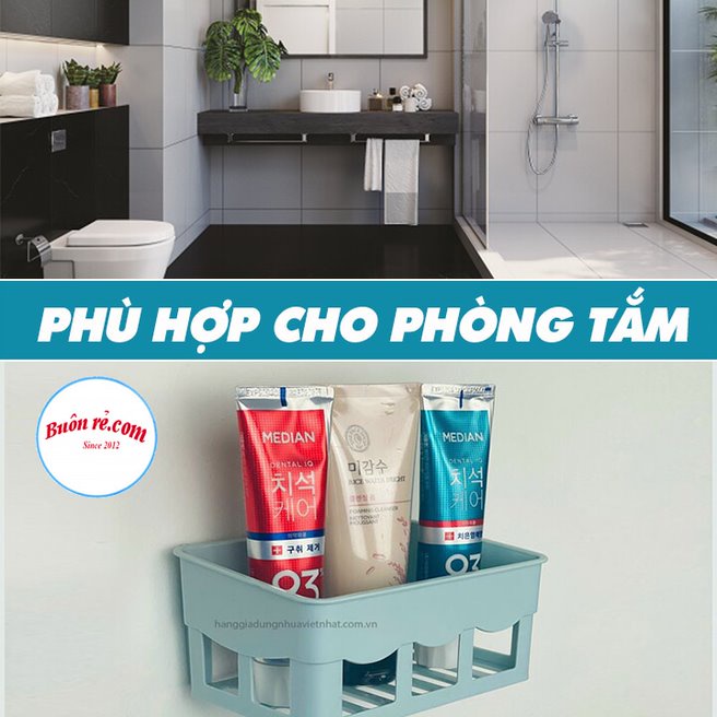Kệ nhựa treo tường nhà tắm, nhà bếp 2 sizeViệt Nhật (5698/5699) - Khay đựng đồ dán tường kèm miếng dán chịu lực tốt Br01420-1