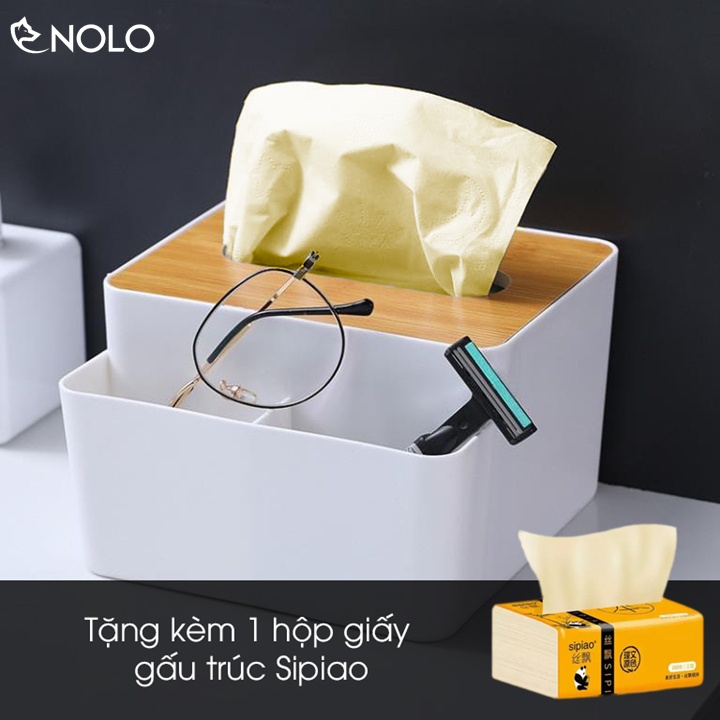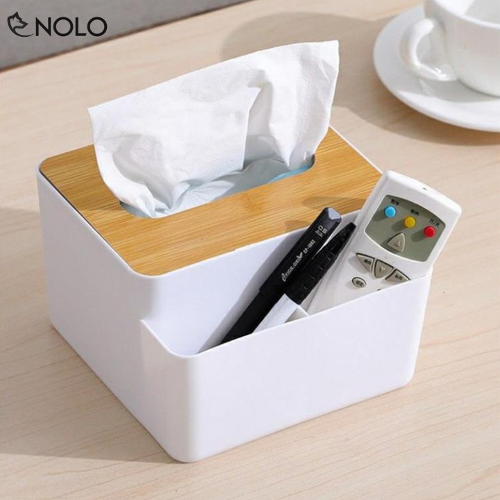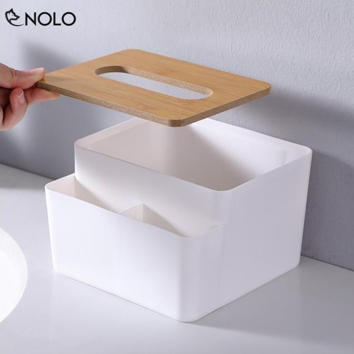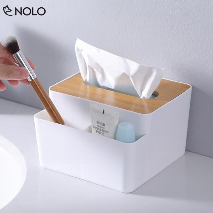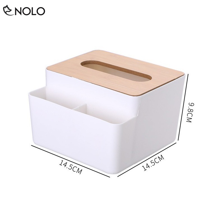 Khay Đựng Khăn Giấy Model CS02 Nắp Gỗ Nhân Tạo Có 2 Ngăn Nhỏ Đựng Vật Dụng Chất Liệu Nhựa ABS