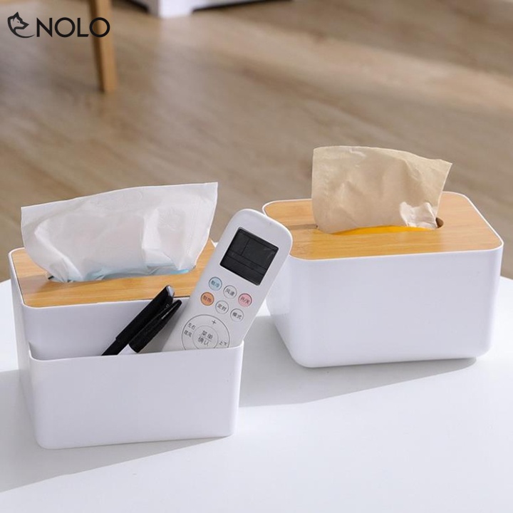 Nhà cửa & Đời sống > Sắp xếp nhà cửa > Hộp khăn giấy || Khay Đựng Khăn Giấy Model CS02 Nắp Gỗ Nhân Tạo Có 2 Ngăn Nhỏ Đựng Vật Dụng Chất Liệu Nhựa ABSCòn hàng