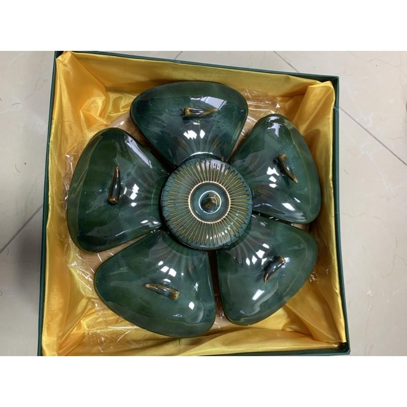 Set đồ bao gồm: - 5 cánh hoa + 1 đài hoa có nắp đậy xếp thành hình tròn, đường kính 40cm - 1 Khay mây Đan Set sản phẩm với chất men được nung ở nhiệt độ cao nên rất an toàn cho sức...- Giao hàng toàn quốc