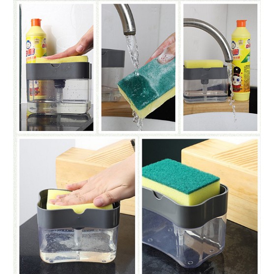 Giới thiệu Khay đựng xà bông rửa chén, Hộp ấn lấy xà bông tiện lợi [tặng miếng rửa chén]
