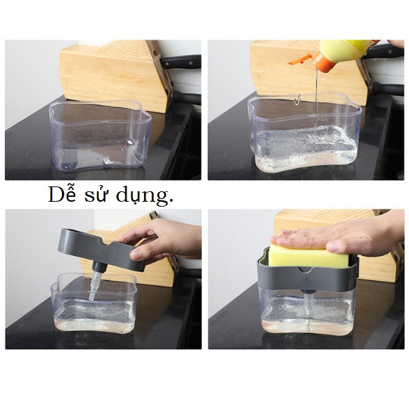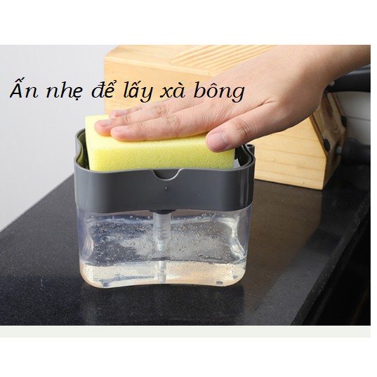 Khay đựng xà bông rửa chén, Hộp ấn lấy xà bông tiện lợi [tặng miếng rửa chén]